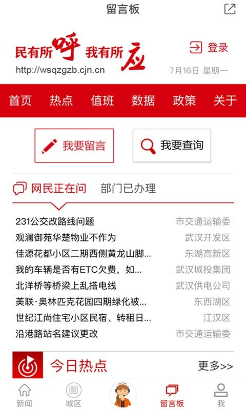 4.城市留言板:民有所呼,我有所应。115家单位在线值守,您的投诉建议都会限时办理。