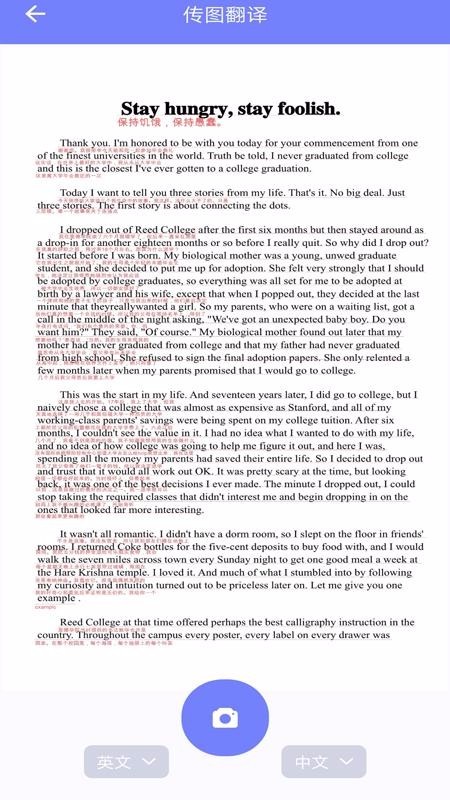3. 支持二十多种语言的全文互译:中文(简、繁体)、英语、日语、法语、德语等,无需再去使用翻译软件,还是一款外语学习神器!