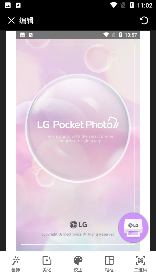 LG趣拍得照片打印软件--Pocket Photo能对照片进行简单的加工,比如滤镜、加相框、加备注等。