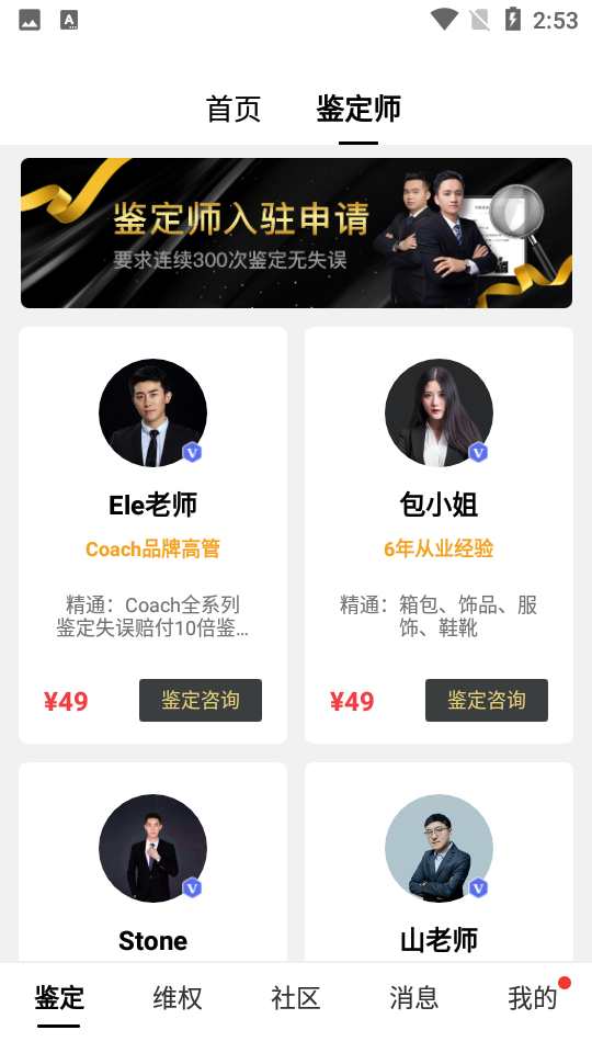 1、海量鉴定师,不仅在此自选鉴定师而且可以随时免费更换鉴定师。