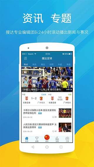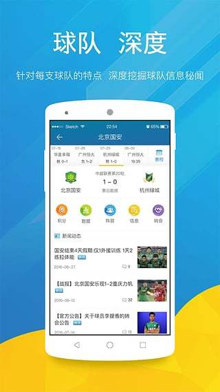 一、热门新闻资讯:我们有专业的内容团队,即时报道国内外有关足球的新闻事件,让您足不出户了解天下足球事,保证新闻的真实度!