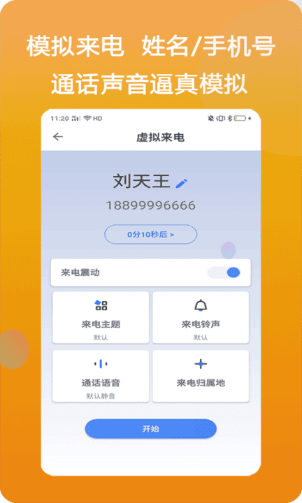 虚拟手机来电:设置时间、联系人,生成虚拟来电;