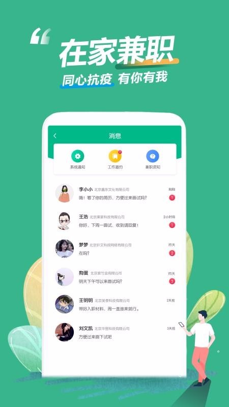 现在的工作分为全职和兼职,全职大家都知道是正常工作,但是有那么一部分人没法干全职,比如宝妈需要照顾自己的宝宝,还有我们广大学子,为了学习而奋斗,无法全职,但是休息天可以兼职,减轻家庭负担?问题来了,现在兼职是非常不好找的,一不留神就会被坑,不用担心,今天它来了,小编给大家带来了2020兼职app大全,帮助大家解决困难!