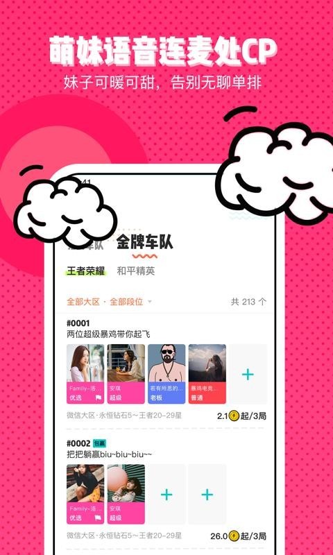 暴暴手机版是最近非常火爆的一款游戏开黑平台,汇聚超多游戏玩家为一体,热门游戏全面覆盖,快速匹配速度快,组队开黑语音聊天,认识更多有趣的队友。软件内入驻了超多的相同的游戏爱好者,这里涉及到了超多的多人游戏,包括了各种手游端游,不管你玩什么都能够在这里找到一起玩的开黑好友,快来下载吧!
