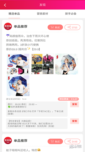 2.包括每日推荐、精选优品、一元秒杀、白菜价、好单库、9.9包邮、直播间、商城返利等各个模块,每天更新上万件优质商品。