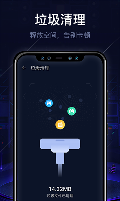 [垃圾清理]:清除手机使用中留存的缓存垃圾、广告垃圾和无用安装包,瘦身成功,让您使用更轻松!
