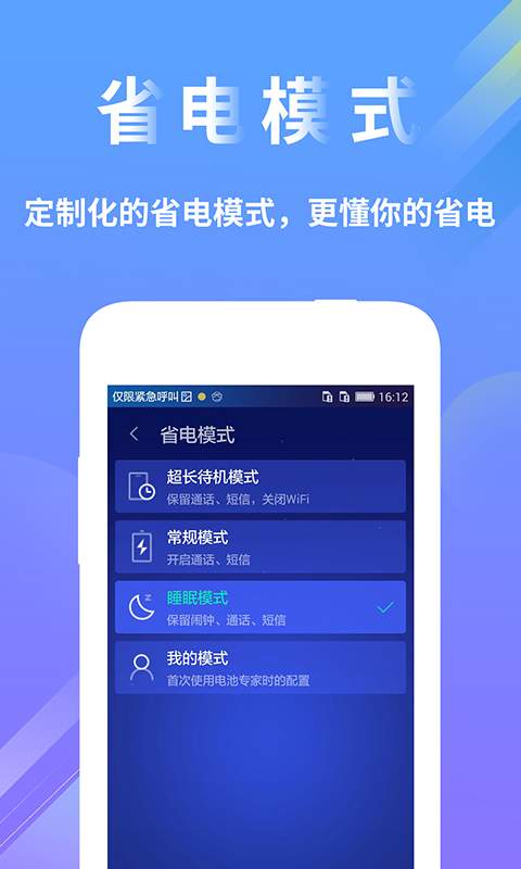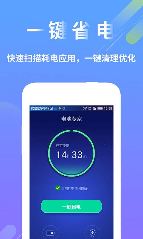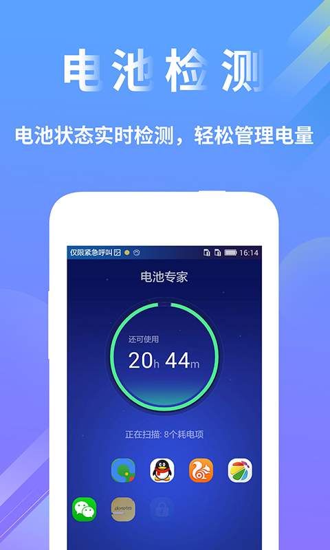 实时检测手机电池使用状态,一键省电快速优化耗电应用。多种智能省电模式选择,根据用户使用习惯自定义设置。更多高级电池使用建议,为您的电池日常保养和使用安全保驾护航!