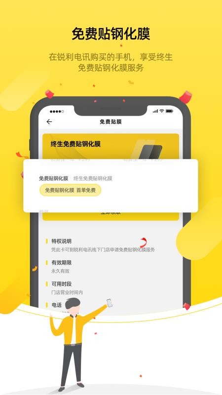 1.钢化膜免费贴,在此购买的手机等产品可以终生享受免费的贴钢化膜;