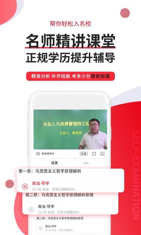 3.自考高清移动课堂,课程清晰真实,教师录制视频同步,支持离线下载,学习更高效