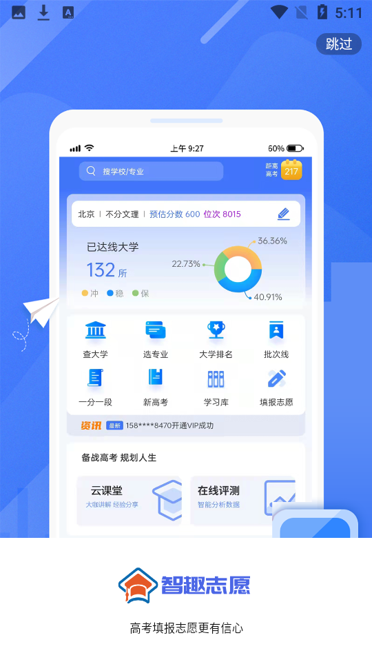 1、智趣志愿app一款整合高校招生大数据打造的智慧报考助手。