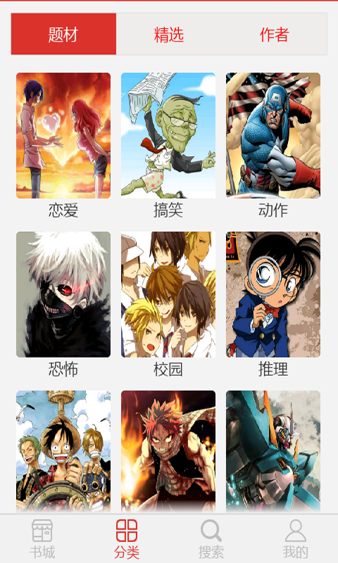 3. 个性分类,智慧搜索 分类涵盖题材,精选和作者3种方式,个性化推荐满足漫迷们的挑剔口味;特有的智能搜索引擎,海量关键词汇搜索引导,不再让好漫画轻易从指尖错过!
