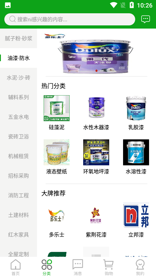 汇筑美材,提供全面的建材辅助材料;机械设备在线租赁;实时定位随时查询附近商家,在线找寻施工队伍;提供建材方面的一站式服务。包括五金建材、消防暖通、钢材铸铁、基础建材、电工电料、灯具照明、标准件、工具机械、耗材、给排水、涂料化工、安防劳保、防水保温、办公用品等在内的十万余种产品,全方位满足施工、装修、办公、消防工程等各方面的工业品采购需求。