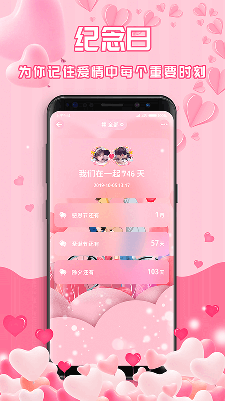 所有用户都能够在这款软件中随时记录情侣之间的各种事件,每一个重要的时刻都能够在这里快速记录下来,这里还能够为用户们提供多种不同的记录方式,文字、视频和图片都能够在这里上传。所有的情侣们都可以下载免费使用哦,去制作属于你们的情侣秀哦,把你们恋爱当中所有有意义的事情都可以记录下俩的哦!