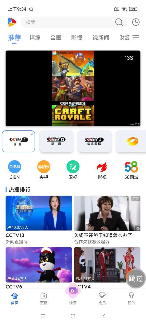 手机电视的直播频道,节目播放流畅,画面清晰,支持一秒换台、调整画面比例,为你提供最好的播放体验。