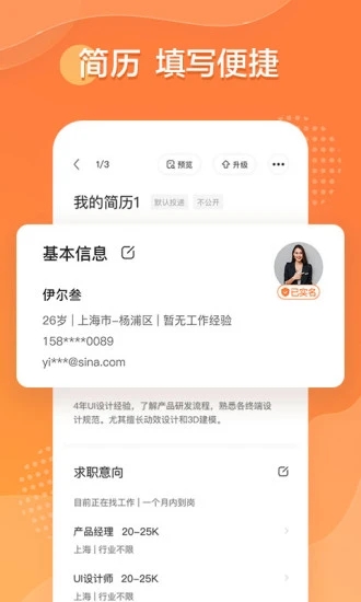 【简历中心】随时创建编辑简历,添加最新工作经历