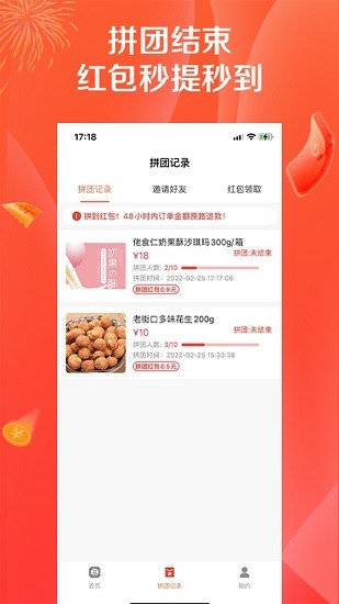 2、一起拼团!酒水饮料食品生鲜,拼团就得赠送红包!