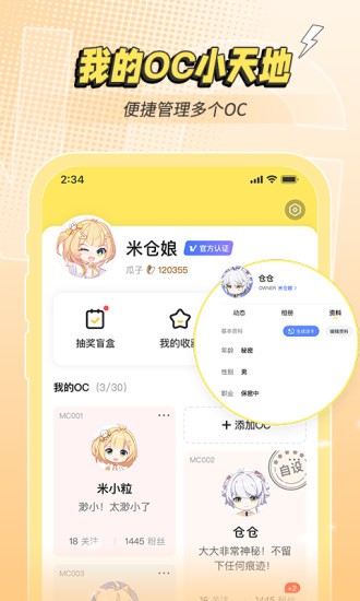 米仓app是一款由广州零号信息技术有限公司发行的专门用于捏脸的社交软件,是致力于为OC人突破次元壁所打造的安全养成原创角色创作和交流平台,用户可以在线遇见共同兴趣爱好的人,随时加入你喜欢的兴趣圈子中互动,在这里你可以体验到诸多非常有趣的观看体验,各种剧情、二次元、悬疑以及恐怖资源随你看,让你可以在这里快速发现喜欢的兴趣圈子,开启优质的社区交友互动模式,用户可以在这里自由捏脸、社交、聊天。当然,大家也可以发布自己的作品来获得酬劳。感兴趣的小伙伴们可以来下载体验哦!