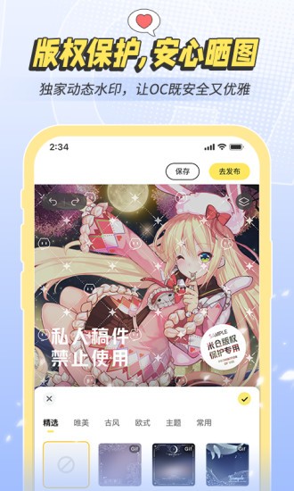 一款专门为OC人开发的原创角色创作软件,该软件为用户提供了超多的设卡装扮,动态水印等,用户能够凭借自己的喜好进行角色创作,并且还能够与其他的用户进行交流探讨,从中获得更多的创作灵感,从而能创建自己专属的小世界。