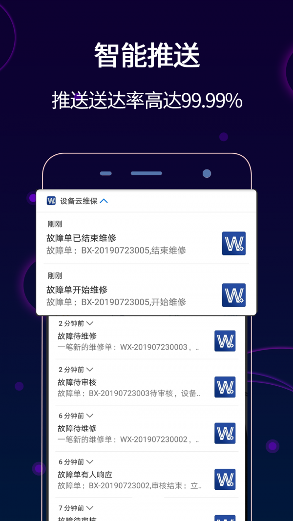 平台通过对报修方、维修方多种角色进行灵活配置,灵活搭建起一套报修-接修和管理流程,满足不同维修场景需要,真正让维保工作第一时间流转到对应的人员手中。