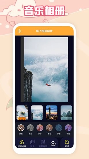 2.音乐相册为你手机内的图片添加各种表达心情的音乐,导入音乐很方便;