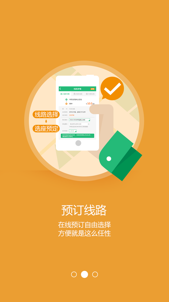 2、在线可以直接预订定制巴士的电子票,乘坐巴士的时候即可凭借电子票上车,不用带零钱买票;