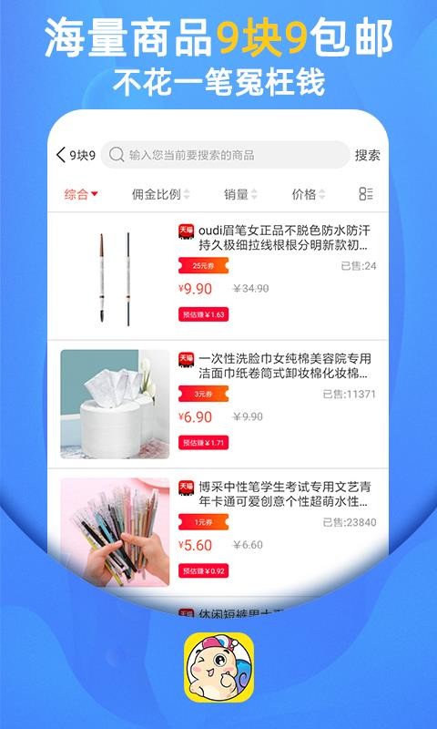 2.省钱又赚钱,每一款商品的推广佣金都会智能预测出来,轻松赚钱;