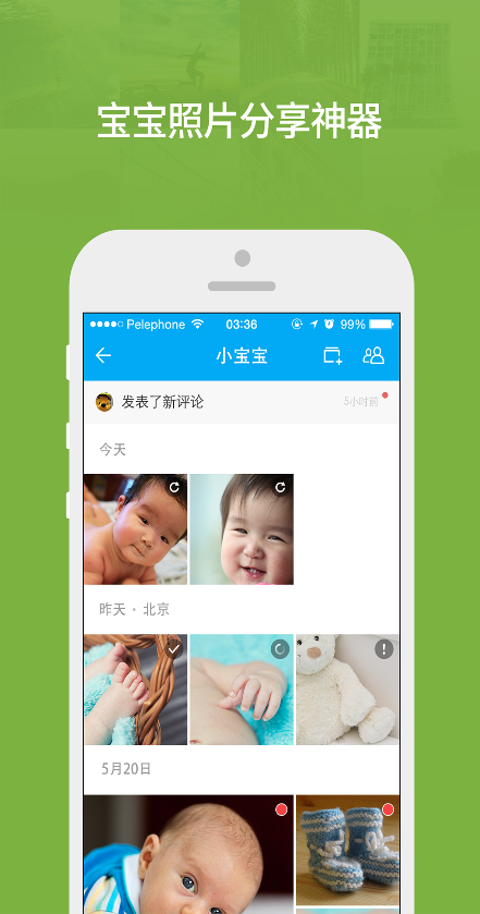 宝宝的成长照片、旅行的合影照片,时光相册可以一键批量分享给亲朋好友;邀请家人共建多人相册,评论点赞其乐融融。