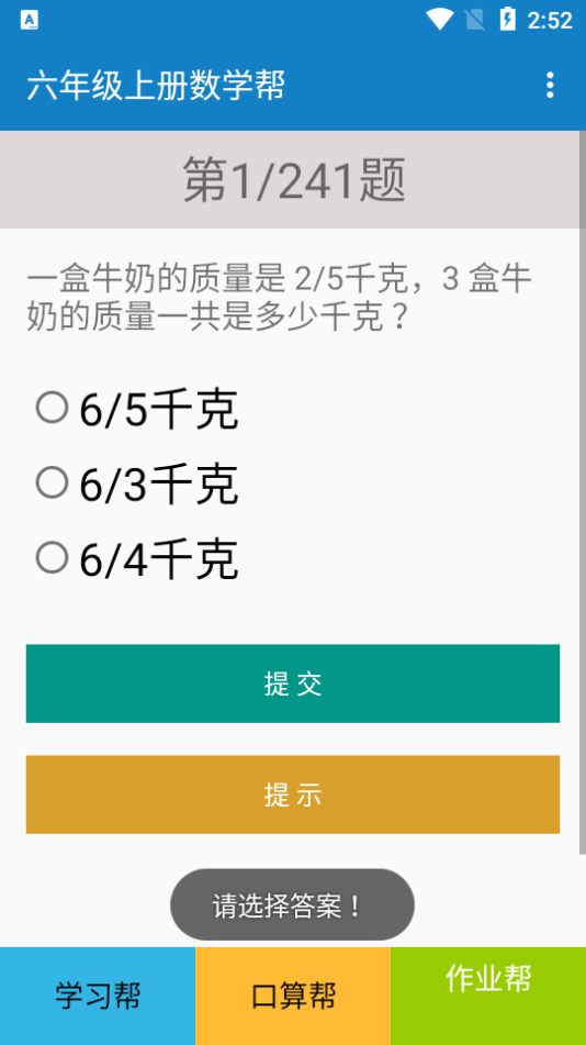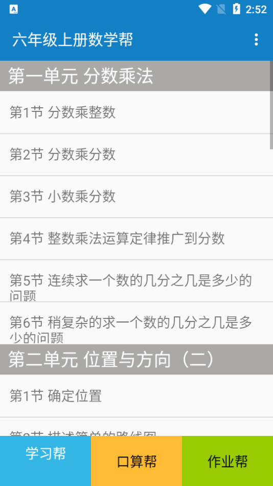 六年级上册数学帮是一款小学生数学课本教育app。这里包含了海量的小学数学重点知识,还有专属的口算训练哦,提高你的口算能力!在这里将小学数学知识内容进行了细分,用户可以选择教材进行分单元和章节学习,能够快速掌握每一章的知识点内容,并且可以进行课后作业练习巩固,适合多种学生下载使用,随时随地可以了解新知识。