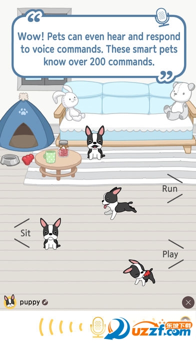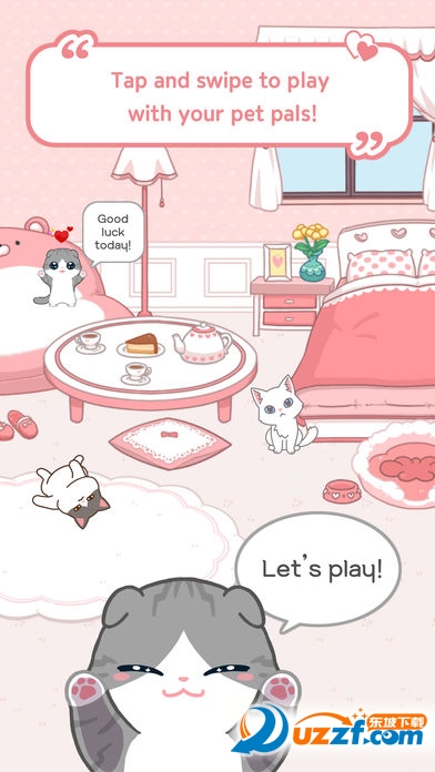 通过互动可以获取爱心,爱心则可以用于领养更多不同品种的宠物。你也可以观看广告、填写问卷来免费获取宠物饼干,或者用 Money 买买买,装扮宠物屋、喂食,到玩具店买玩具给它。