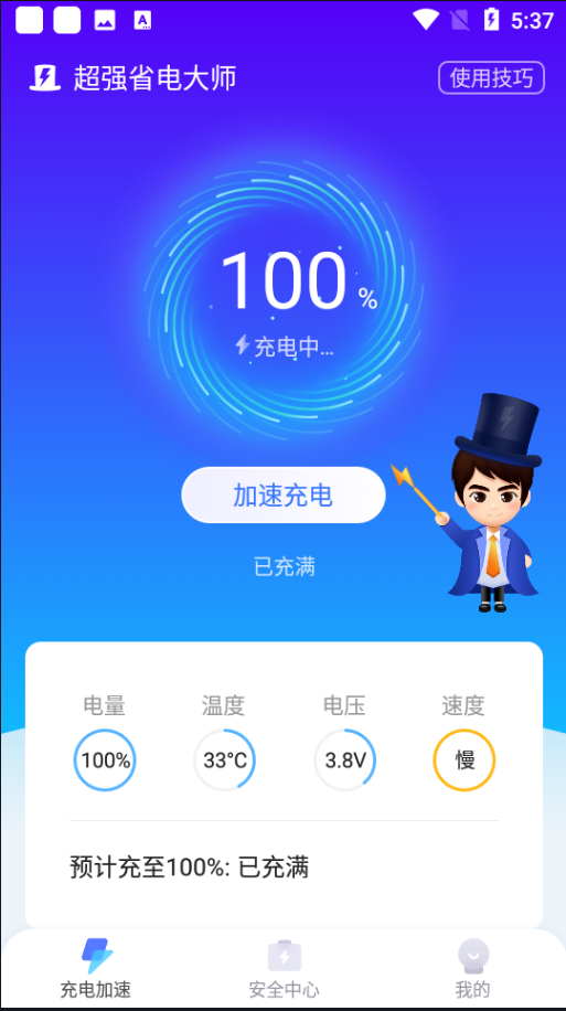 超强省电大师app是一款非常实用的手机充电保护软件,app能够有效的帮助用户手机充电进行优化,持续增加充电速度,降低电池温度,延长电池使用寿命,非常的实用。还可以一键提高充电速度,延长电池寿命,检测电池温度,预防风险发挥电池最大功能,适配各种手机型号,操作简单,一键启动,喜欢快来下载吧。