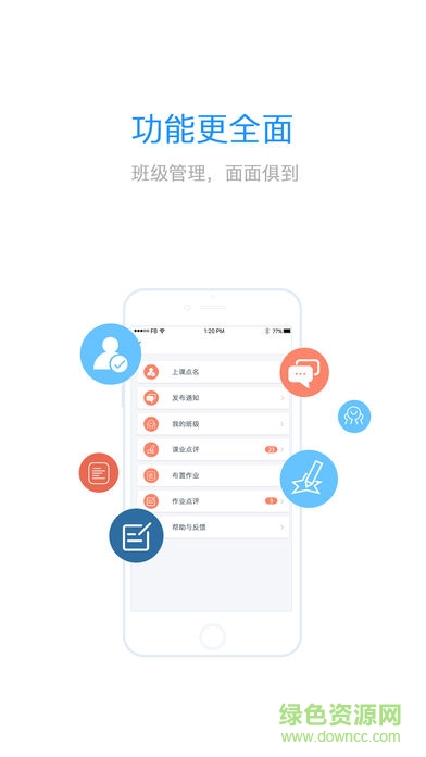 根据老师上课习惯,通过快捷菜单迅速完成上课点名、发布通知、课业点评、作业点评等日常工作内容。