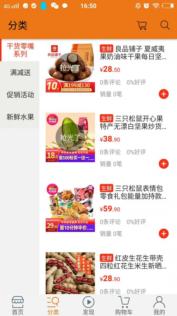 拥有丰富的货源,实时上新,涵盖水果、蔬菜、坚果、小吃等各个品种,
