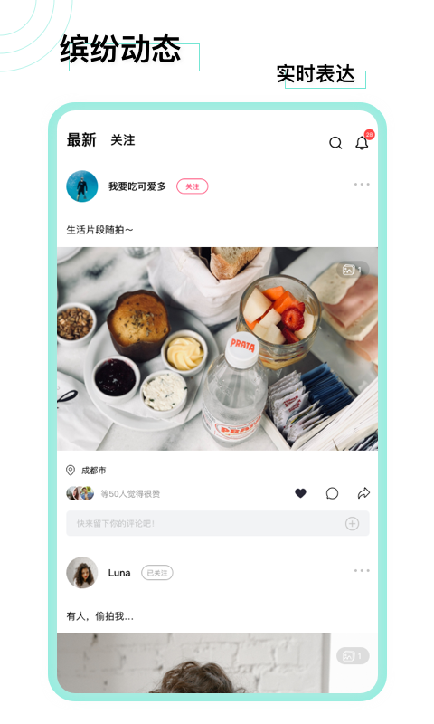 你可以在脸咔app中发布动态,别人可以给你留言,评论或转发,开启你的第一次交流。