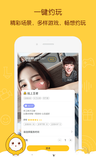 多样化线上、线下约玩。游戏要上分?深夜没人陪?……不要愁,上弹豆一起玩;