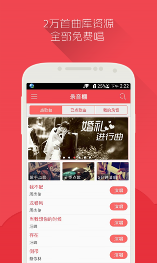 4、支持歌手点歌、分类点歌和五分钟清唱等多种点歌方式;