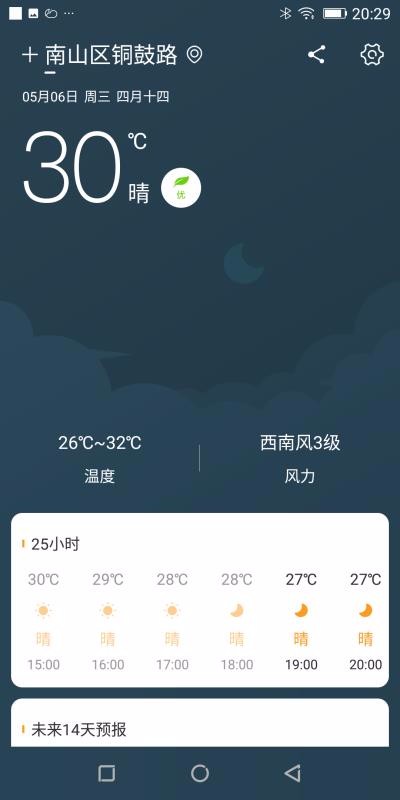 如果你要查看当天天气细节或者未来的天气情况,可以左右滑动屏幕;
