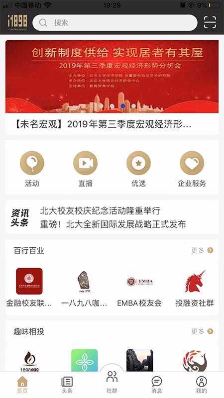 用户可以自主加入北大校友社群,在社群之中可以邂逅全球的北大校友;