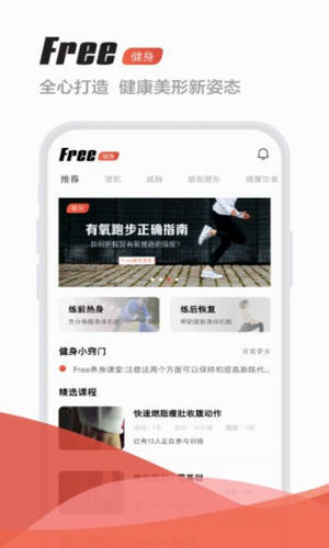 Free健身是一款兼顾健身课程,饮食搭配,形体塑造的综合型健身APP。