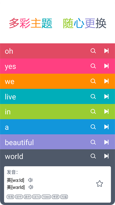 提供了实用的”背单词”功能,随时随地巩固自己的英文词汇记忆,高效地提升英文词汇量。