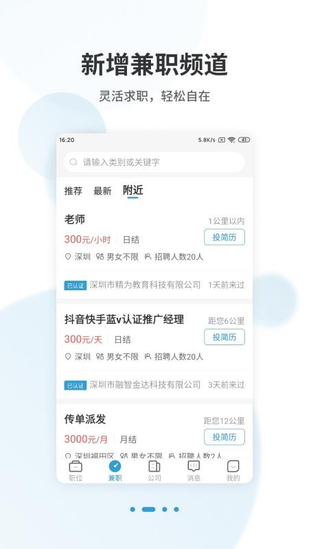 附近职位:还为你提供了附近的职位内容,周边的职位招聘信息都能一网打尽;