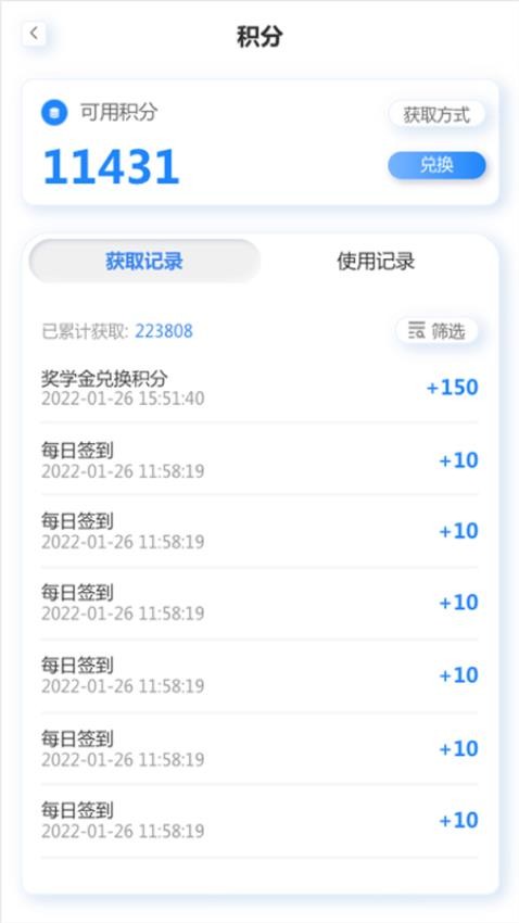 针对个人积分的使用情况会实时的进行记录,清楚每一次的具体使用情况