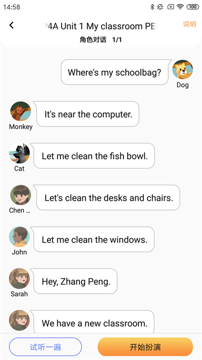 通过课文朗读、角色朗读、记忆活动、课文背诵、情景套用模块,落实课标的标准和要求。