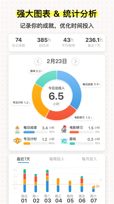 投入时间统计分析,帮助你合理安排时间