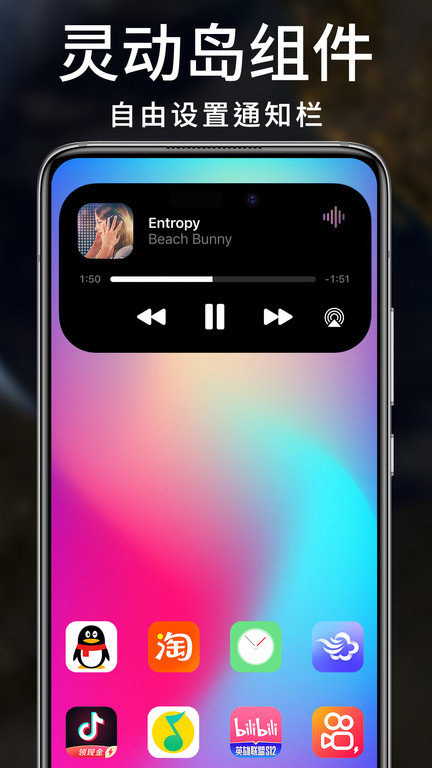 灵动小组件是一款手机通知栏提醒工具,手机在进行充电、播放音乐、插入耳机等操作时,就会收到通知。您还可以设置灵动岛的大小、位置,让您的手机看起来更美观。