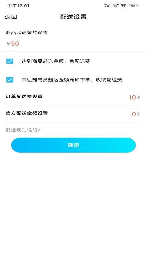 4. 根据实际业务需求,设置相关参数,例如配送地址、退款方式等。