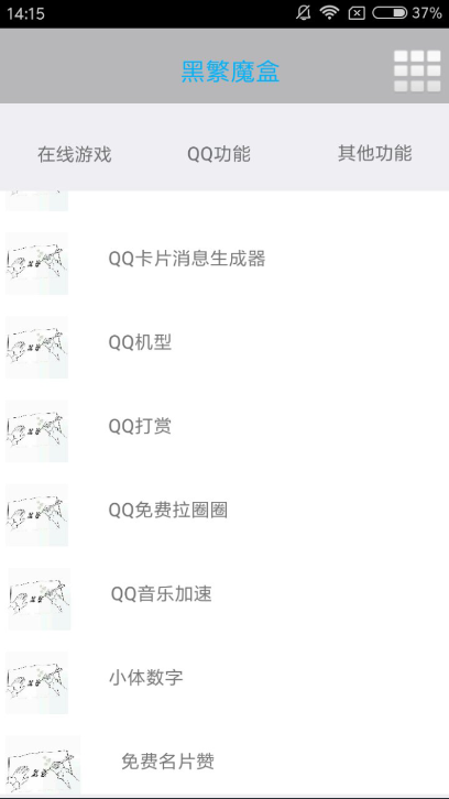 黑繁魔盒app是一款手机魔盒软件,拥有上百款实用玩机工具,支持手机QQ刷赞、vip影视解析、表情包制作、游戏辅助等等,界面清爽,功能丰,强大的手机工具箱软件,提供海量实用工具,只有你想不到的,没有它没有的,赶快下载使用吧~