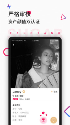 方糖社交是一款高品质、严审核的高端同城社交平台,致力于为平台上的高端用户们提供相识、相知、相恋的机会,同时聚集更多同城精英,共同创造财富碰撞颜值的浪漫盛宴。 甜蜜约会交友软件,成熟男神和魅力女神不再孤单,也不再荒废时间和情感。