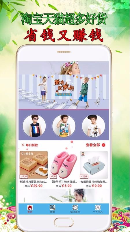 人人省钱app是一款手机购物软件,人人省钱app集生活用品服装美妆等商品信息为一体,人人省钱app领券购物精品好货超低价格享不更省钱。快来下载体验吧!app与淘宝网、天猫商城、拼多多平台等一线电子商务平台协作,内置很多超大金额优惠券等着你领取,相对性比立即购买最大能够节约90%之上,给你每一次购物都是有优惠,都能享有优惠;服务平台中发布的每天打折商品,优选每个人都喜爱的受欢迎产品,能够廉价购买,还能领取优惠券,让购物更划得来。