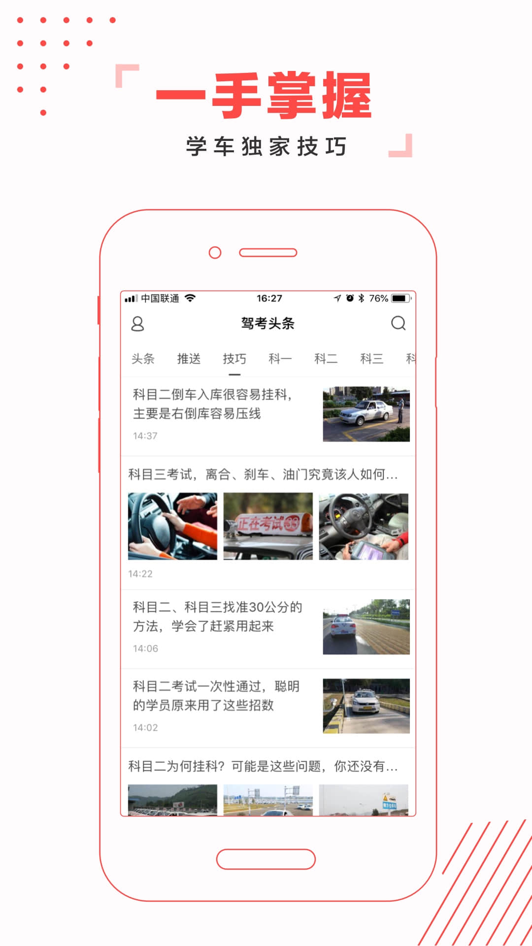 驾考头条app是一款资讯阅读应用,可查看科目通关技巧,让您考试无忧,轻松获取驾考政策以及相关资讯,还有秘笈、心得、法规、新手说、香车、美女、段子等多种丰富精彩的内容,图文并茂,让您阅读更畅快,在驾考头条app,你能看到科目一、科目二、科目三、科目四海量学开车技巧、驾考政策新变化、考试注意事项、学霸经验分享等。无论你是学的小车、货车、大客车或其他车型,相信里面都有对你有帮助的内容,助你驾照考试满分一点通。有需要的朋友赶快下载体验吧!