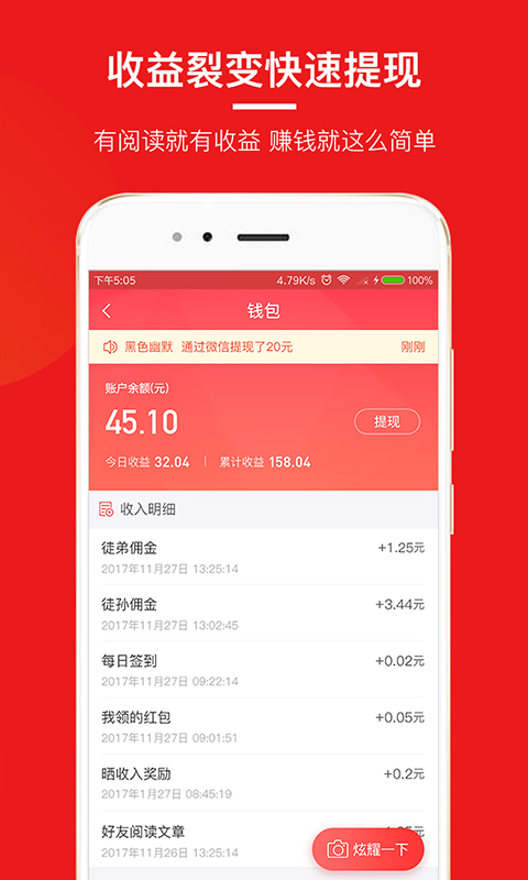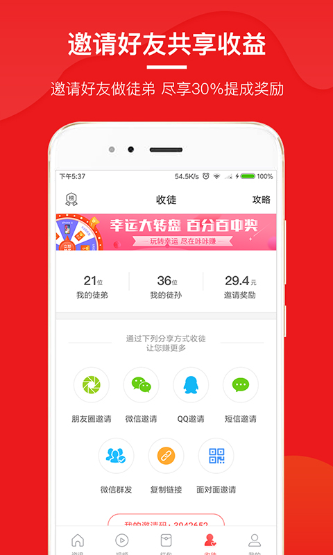 邀请好友奖励现金,更有10级粉丝制度,超高收益躺着赚钱